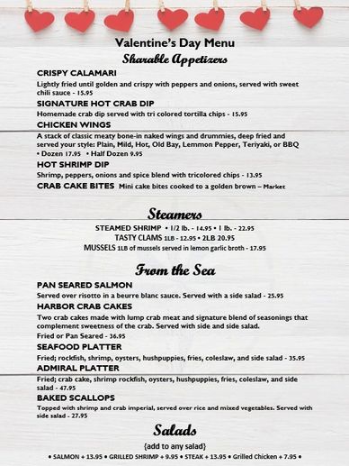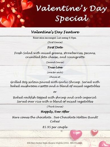 We will be serving a condensed special menu for Valentines Day starting at 11am Saturday February 14th
